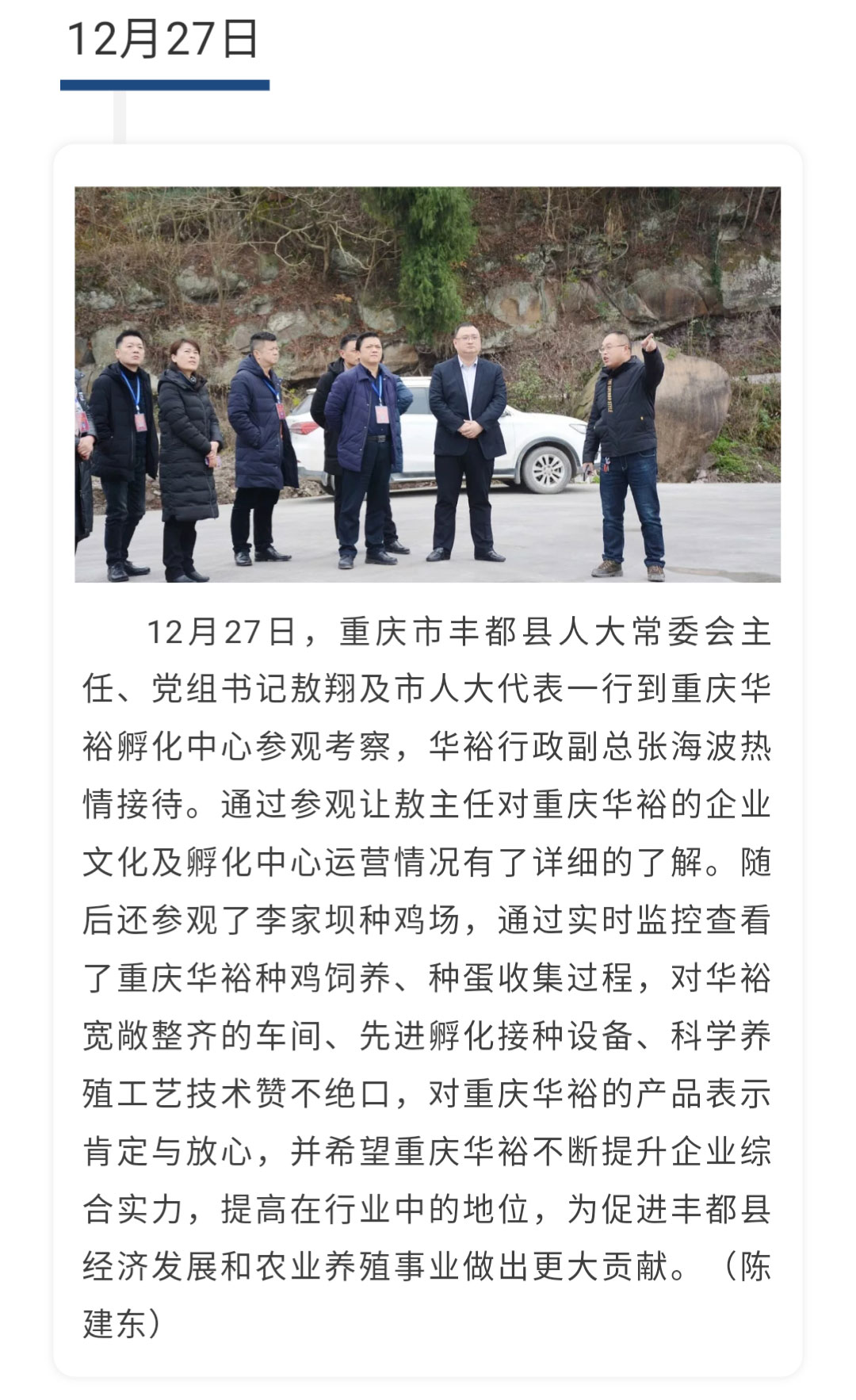 【一周快報】重慶市豐都縣人大常委會主任敖翔一行蒞臨重慶華裕