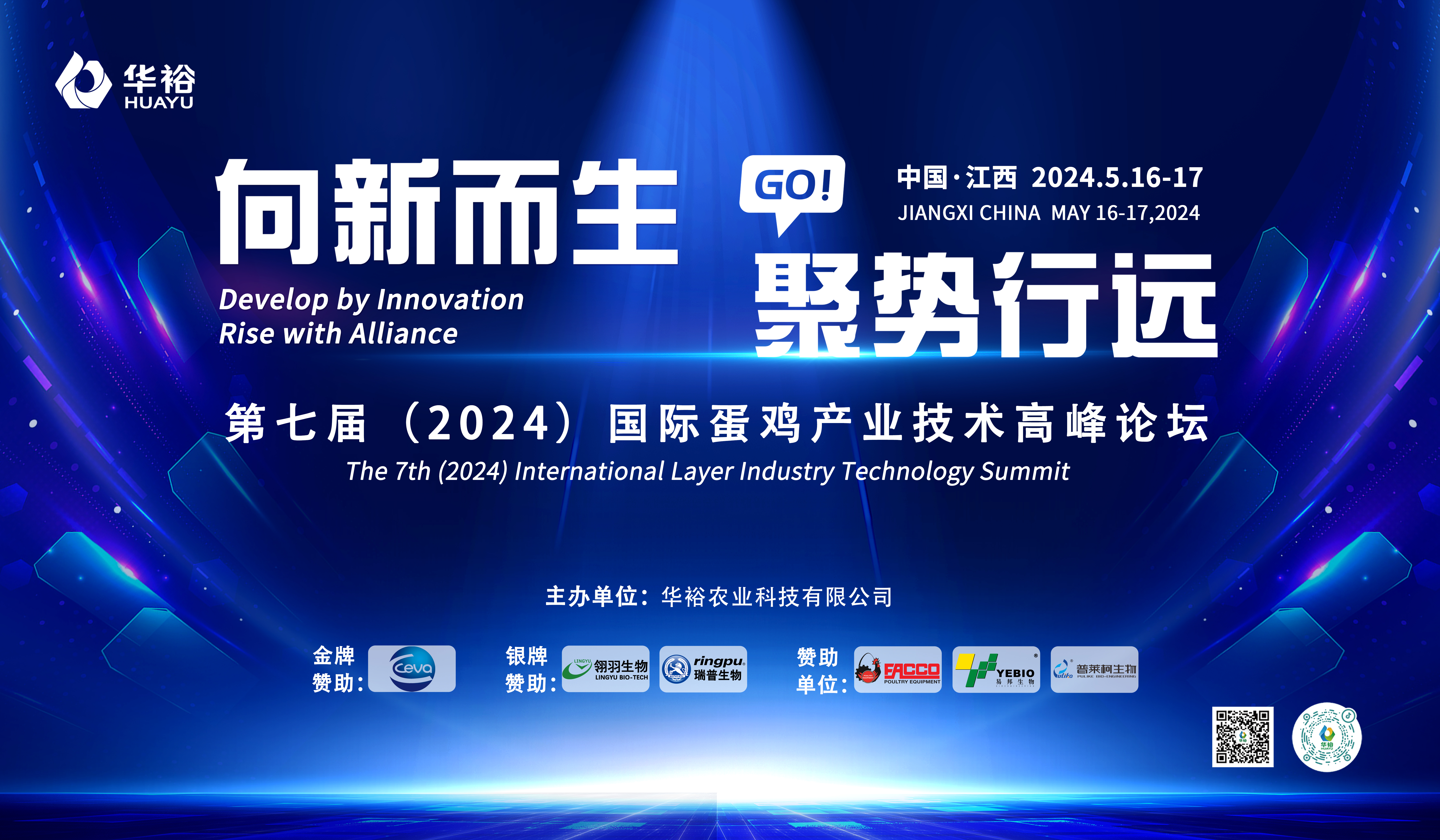 2024年5月16日——17日,由華裕農業科技有限公司主辦的第七屆(2024)國際蛋雞產業技術高峰論壇在江西南昌隆重召開。本次大會以“向新而生,聚勢行遠”為主題,來自全球的800多名、線上近萬名行業知名領軍者、專家和合作伙伴齊聚...